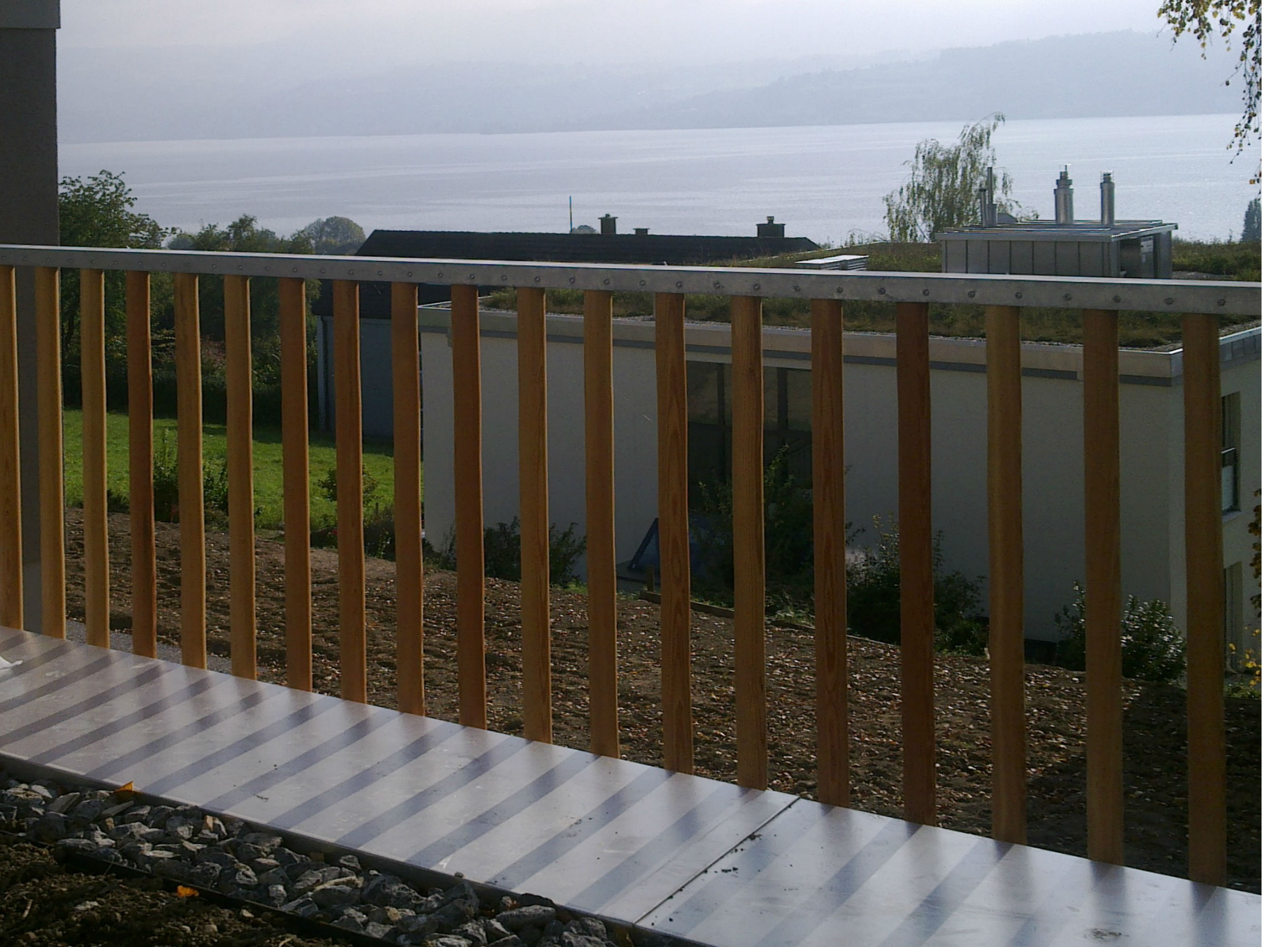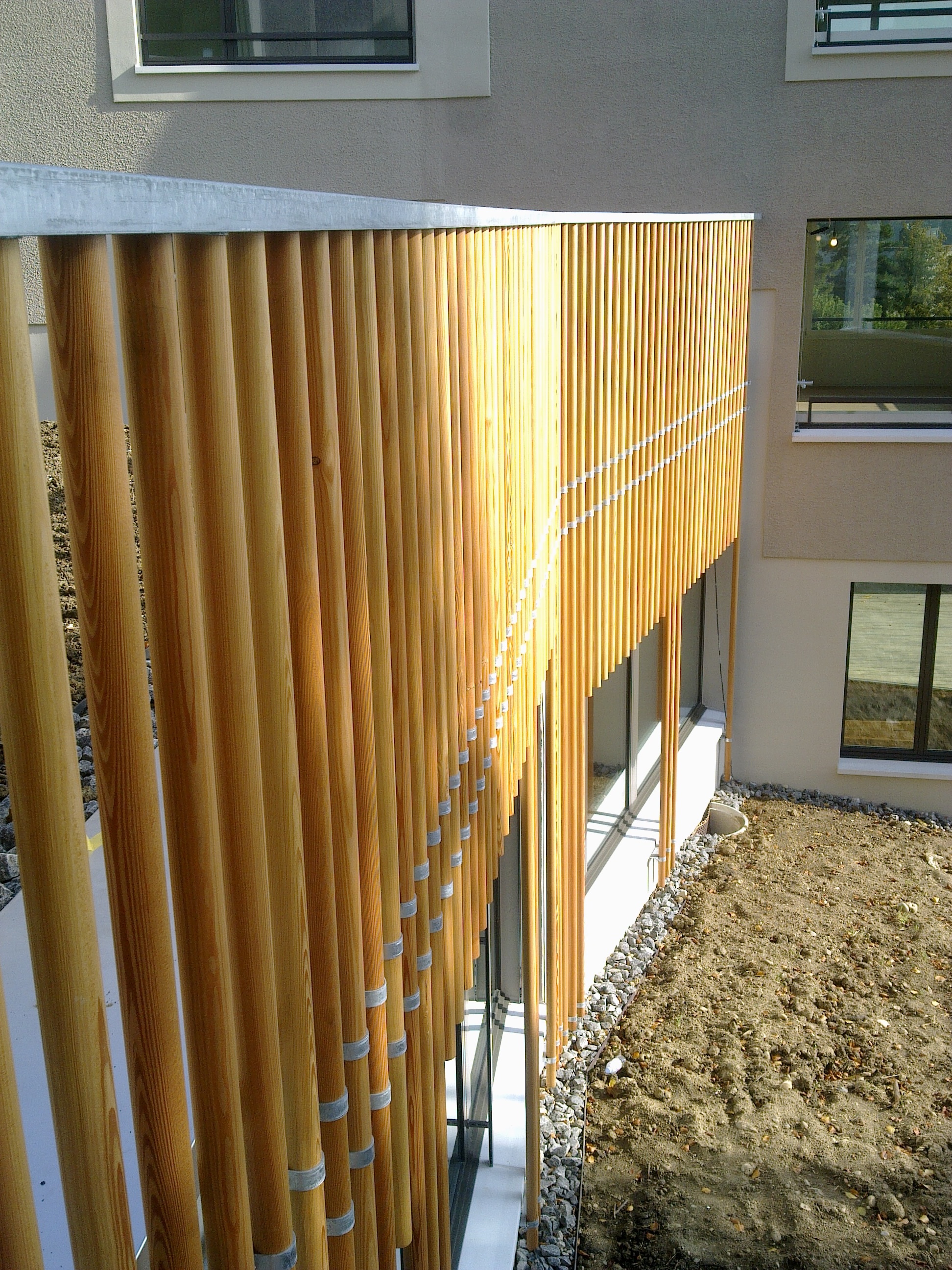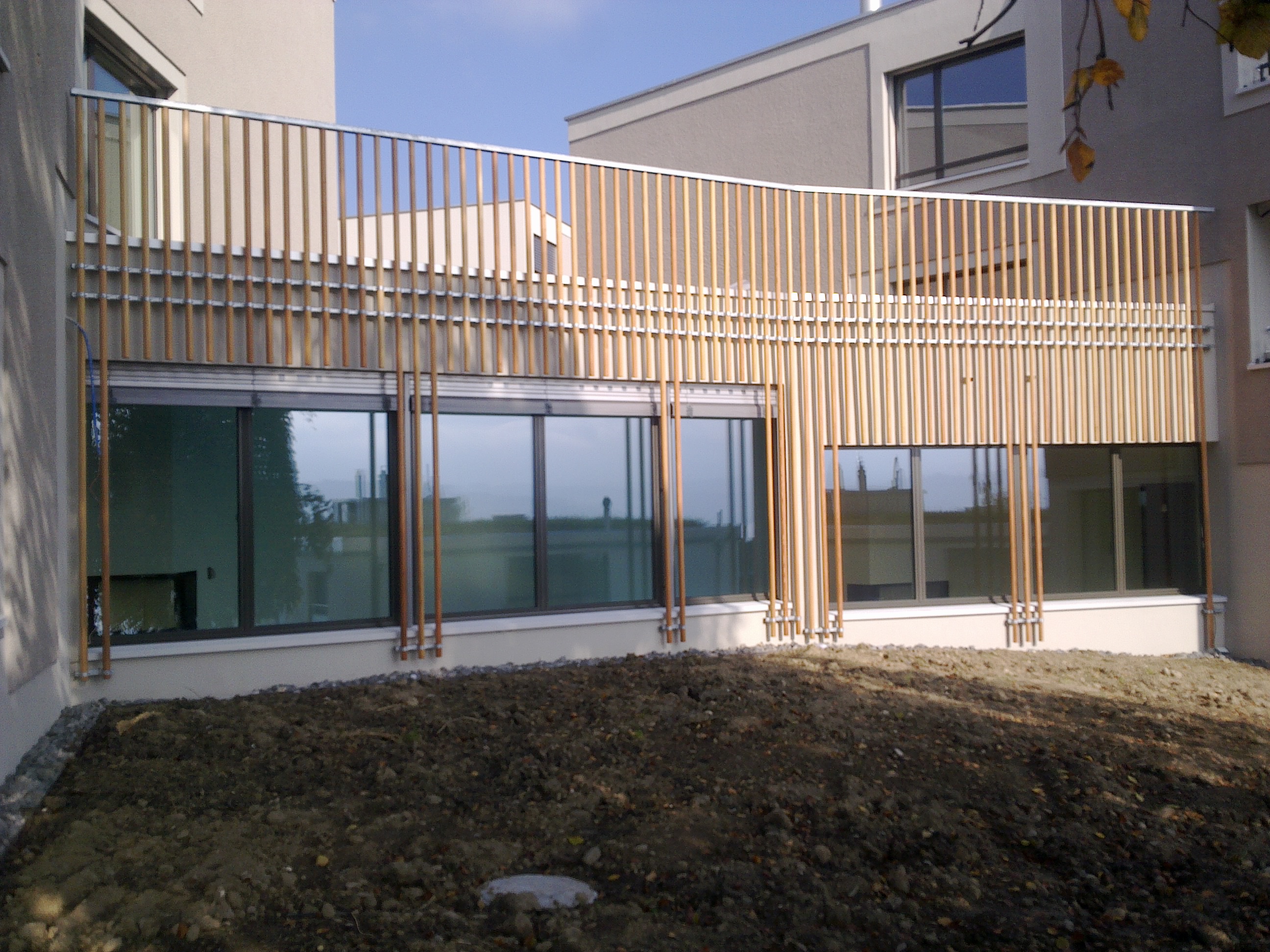 Fassadenbekleidungen und Brüstungen mit Holzstäben,Metallbauarbeiten