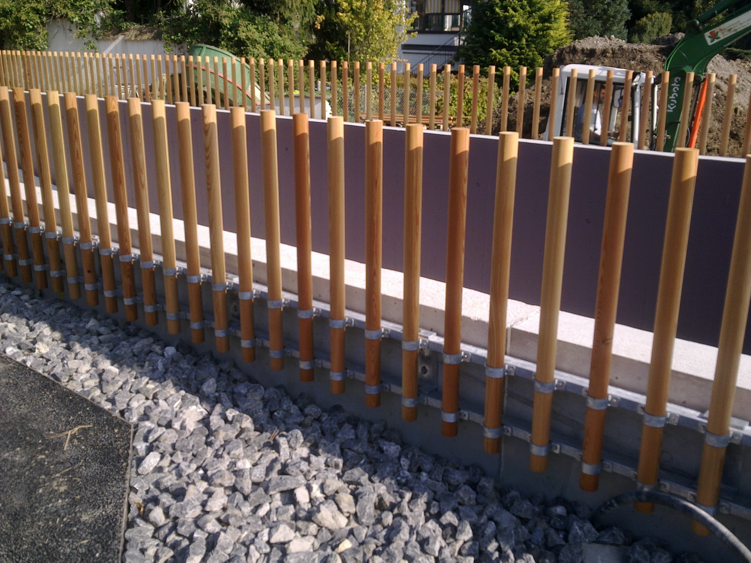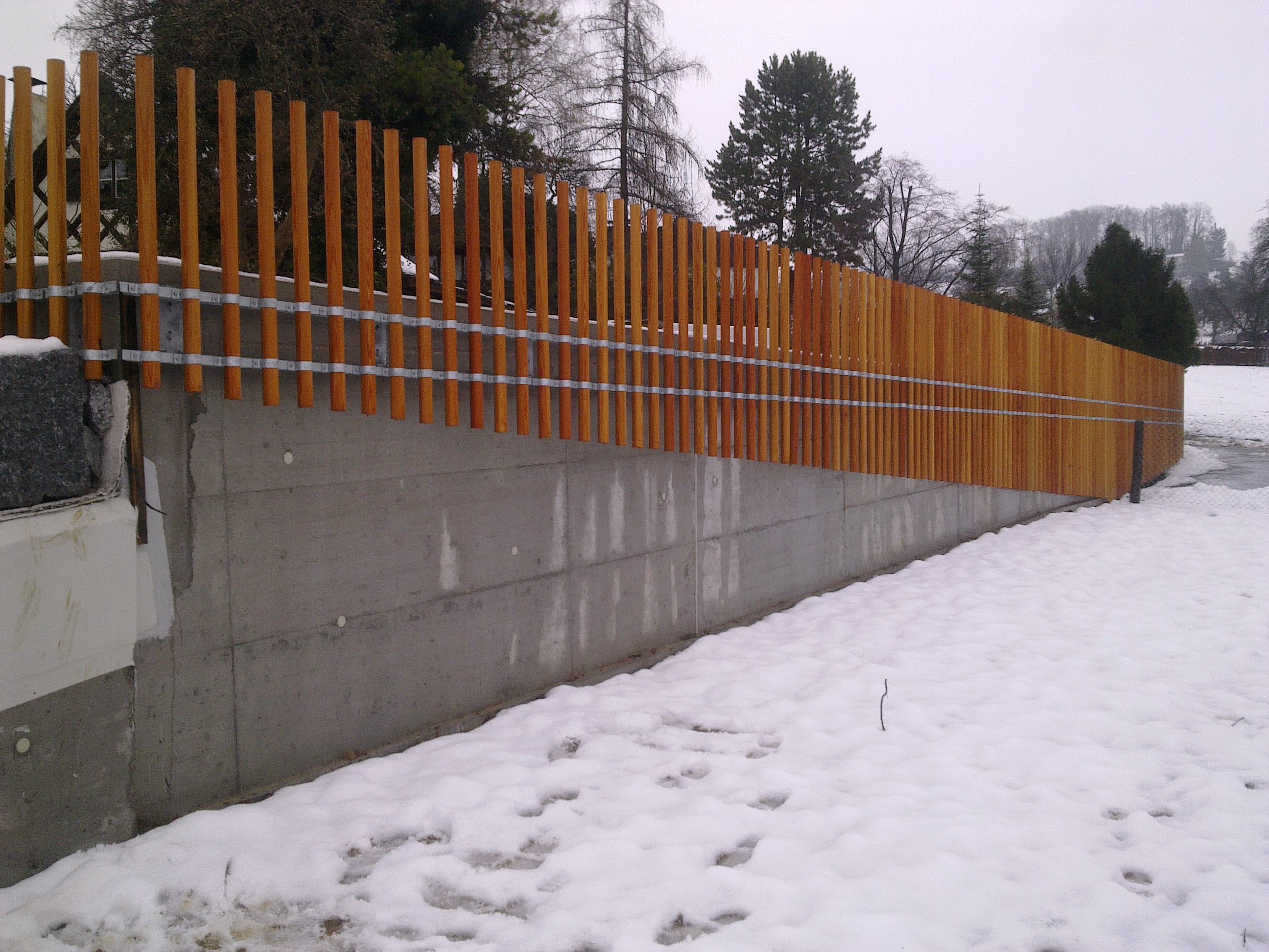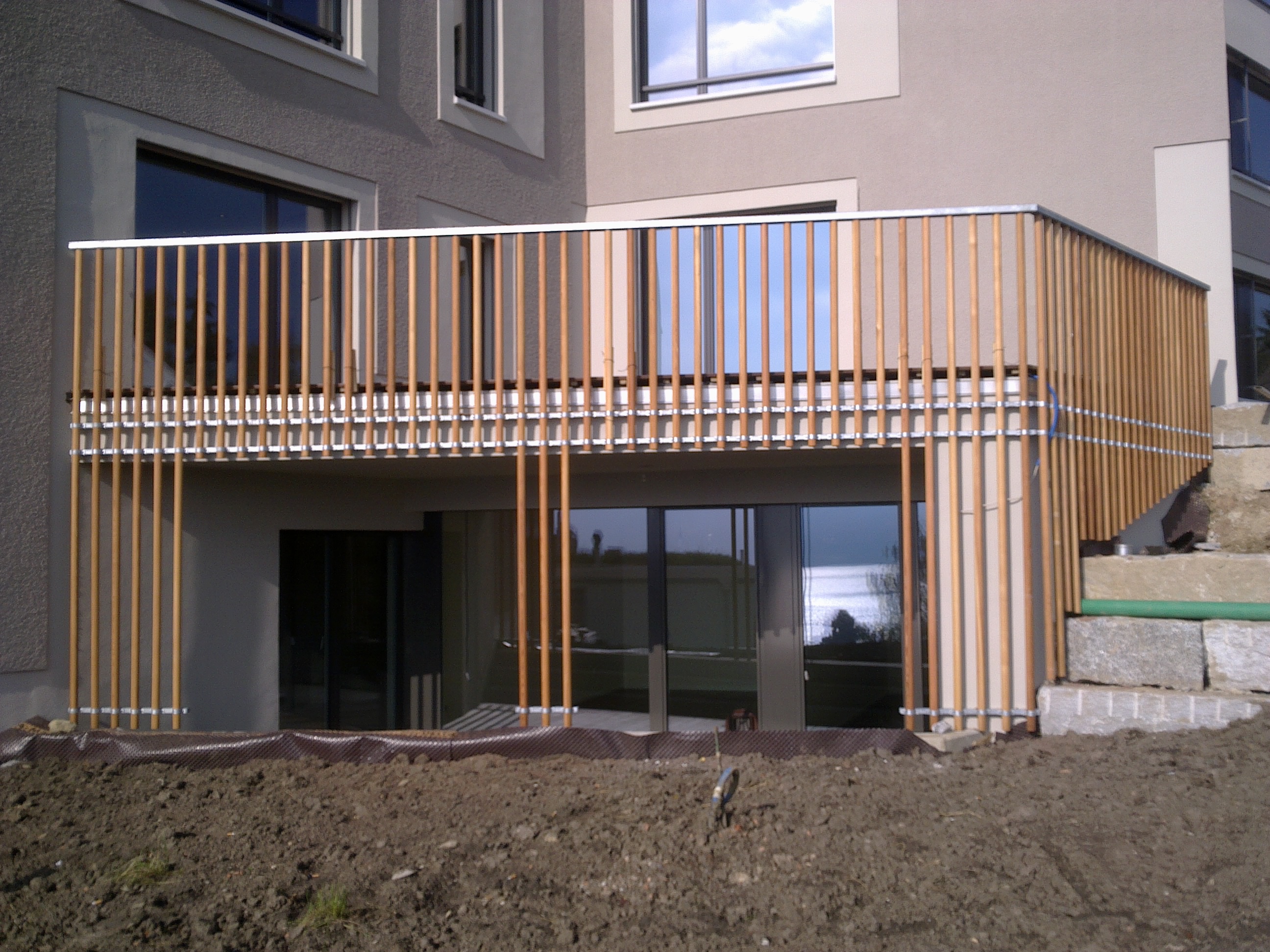 Fassadenbekleidungen und Brüstungen mit Holzstäben,Metallbauarbeiten